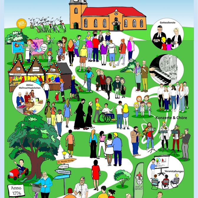 Jeyaratnam Caniceus, pixabay (Windsack) - Tom, pixabay (Glocke) - Evangelische Medienarbeit EMA (Kalenderblatt) - Angelika Weigelt design (Kirchenjubiläum) - übrige: M. Hans