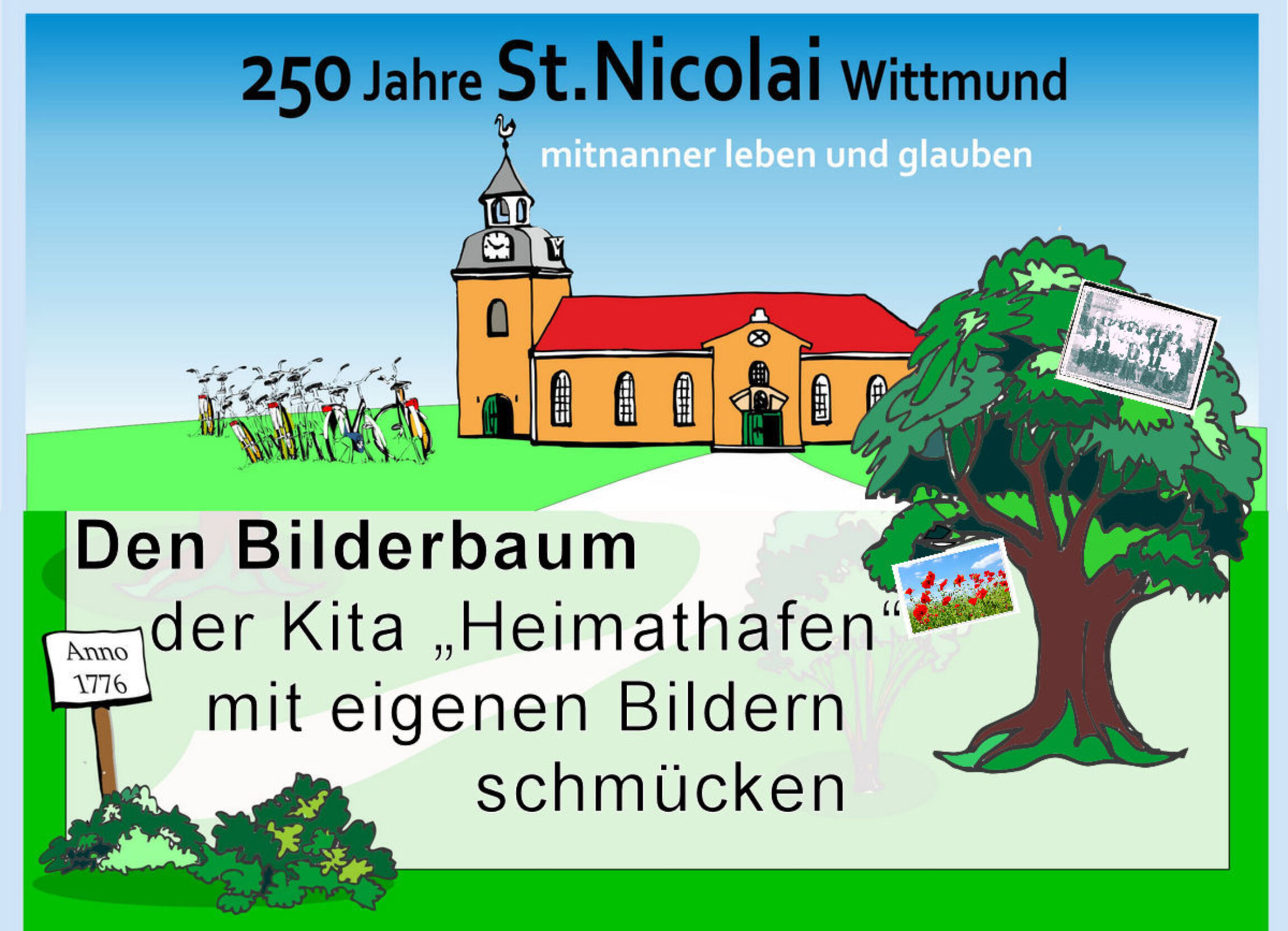 Bilderbaum der Kita "Heimathafen": Bringt eigene Bilder mit und lasst den Baum "grünen"!
