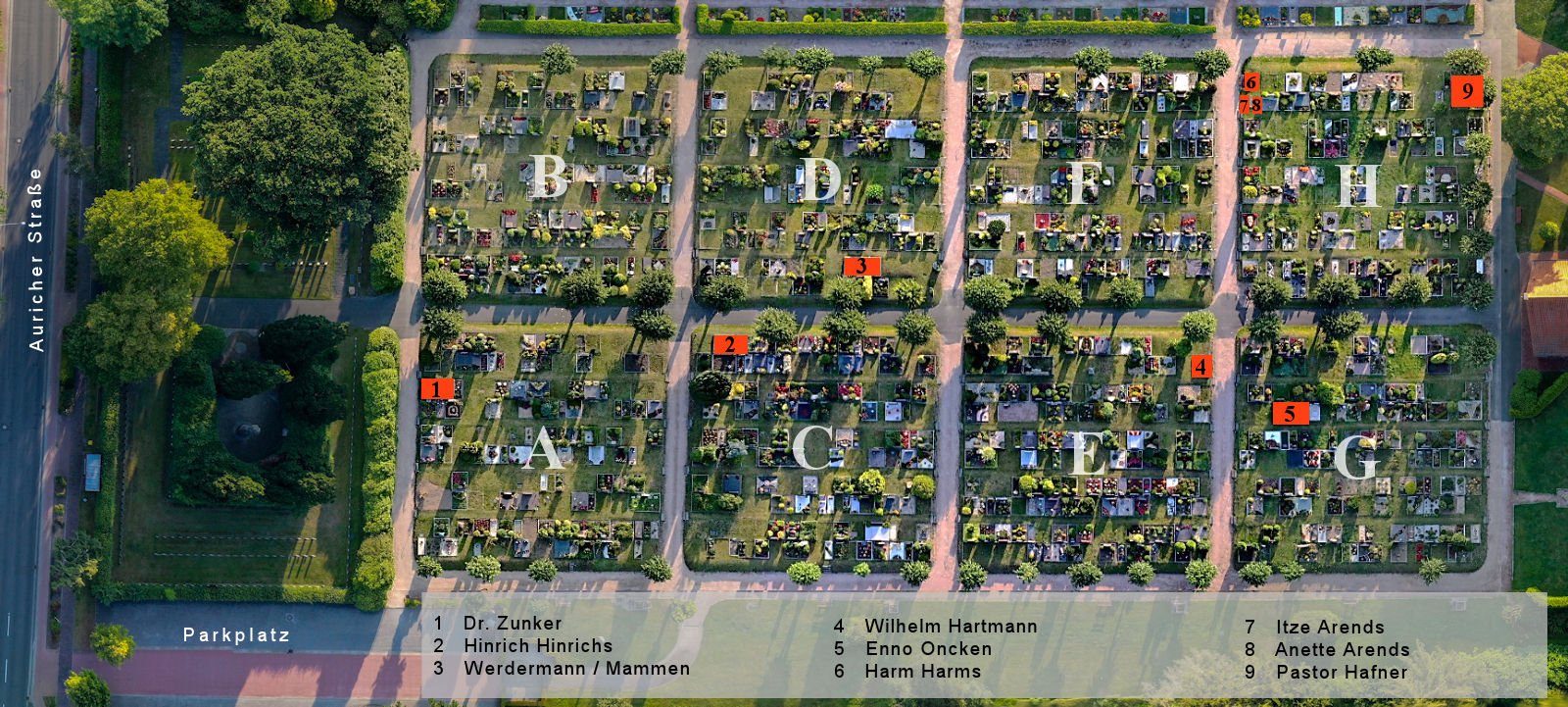Neben den hier abrufbaren Dokumenten gibt es nun eine von Uwe Duden verfasste Schrift, in der der genealogisch versierte Autor die Informationen zu den einzelnen Grabstellen zusammenfasst. Außerdem gibt er einen ausführlichen Überblick über die Pastoren, die die Beisetzungen der betreffenden Personen vorgenommen haben. Den Abschluss bildet der Wiederabdruck einer kulturhistorisch interessanten Arbeit zu Bestattungsritualen in Ostfriesland von Anneliese Krull, die erstmals im "Anzeiger für Harlinger Land, Friesische Heimat" erschienen war (2004).