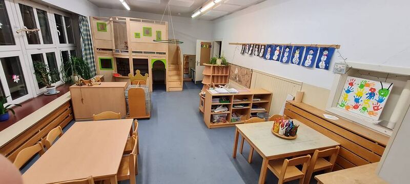 Wir unterstützen das Freispiel als wesentliche Lernform mit folgenden Möglichkeiten unserer Einrichtung: Rollenspiel-/Puppenecke, Bauecke, Mal- und Basteltisch, Gesellschaftsspiele, Bilderbücher, Außengelände.